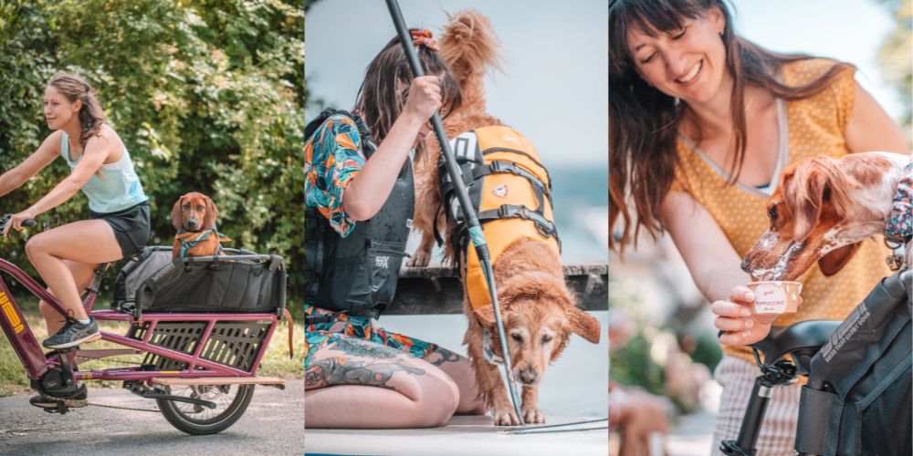 Whether you’re a seasoned bike tourer with your pup, a fan of gentle strolls, or simply curious to try something new, we’ve put together a ready-to-ride itinerary: paddleboarding on the lake, swimming spots, cappuccinos and canine shopping.