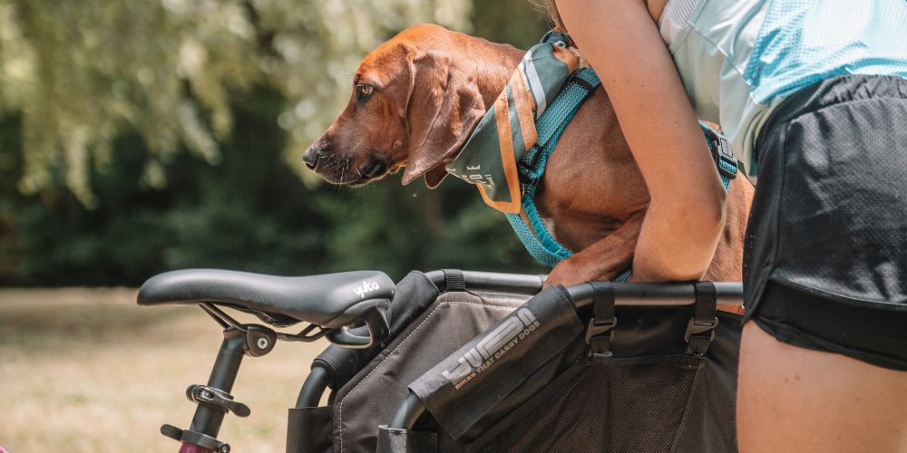 Before setting off along the lakeside cycle path, take a moment to calmly check your gear: adjust your dog’s harness, make sure the lead is securely attached, keep the water bowl within easy reach, and double-check that everything’s safely stowed in your Yuba cargo bike – complete with the trusty WoofTop for a comfy ride. This moment of preparation is also a chance to strengthen your bond with your four-legged friend, a peaceful pause before heading off in perfect harmony on your cargo bike adventure.