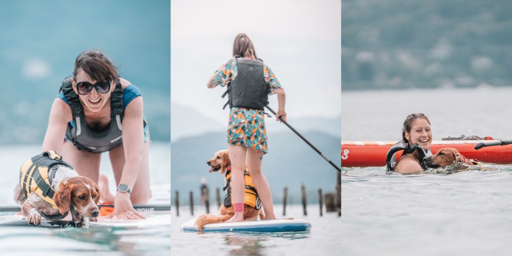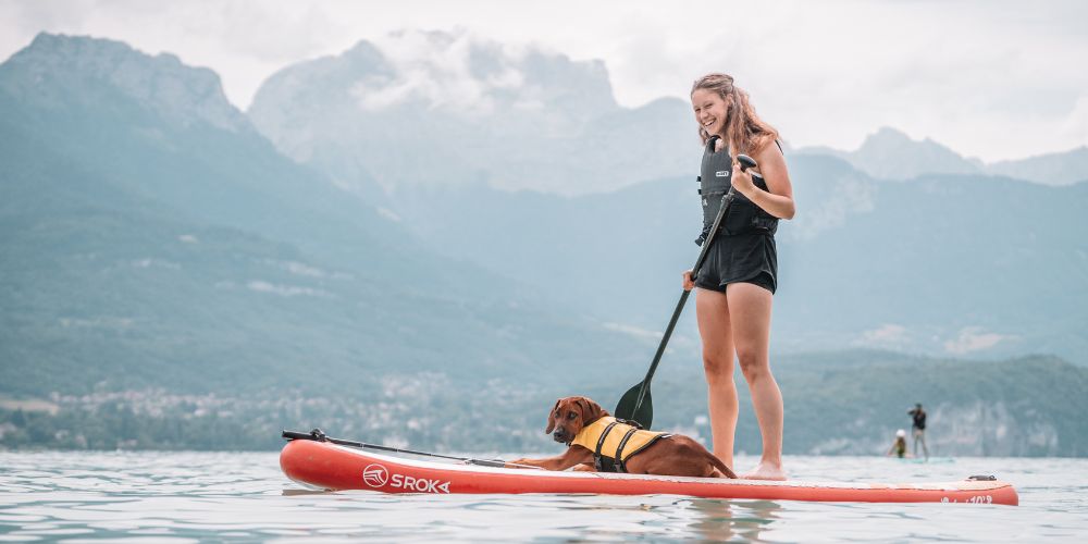 Yes, your dog can join you on the paddleboard! Whether they’re sitting between your legs or standing at the back, they’ll share a refreshing, heartwarming moment with you on Lake Annecy. The ride follows the gentle rhythm of your paddle strokes. Clear water, mountain views all around: just breathe it in and enjoy.