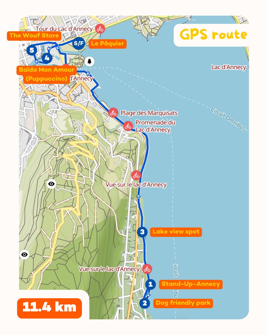 Take your time, stop for a few photos: your dog in the WoofTop, the lake glistening behind you, sailboats drifting by… It’s the perfect chance to capture some great memories. You might even film a few clips of your ride or simply pause and soak it all in. Every pedal stroke lets you feel the quiet magic of Annecy.
