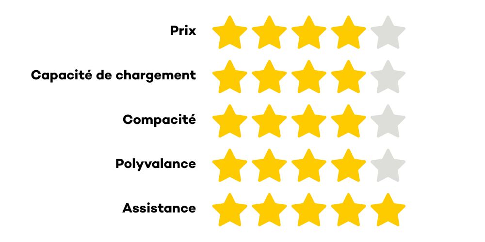 | Modèle | Budget | Capacité | Compacité | Assistance | Idéal pour |