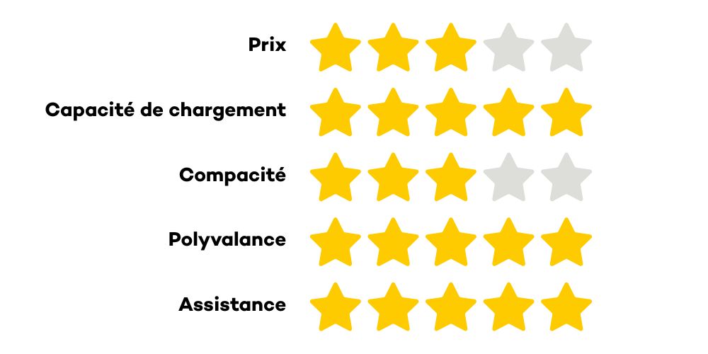 Résultat : une conduite stable, même à basse vitesse, tout en conservant une bonne maniabilité, même chargé. Oui oui c’est possible !